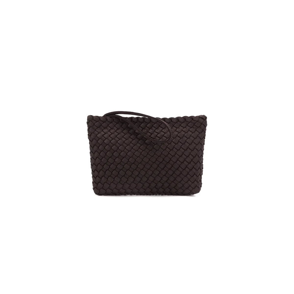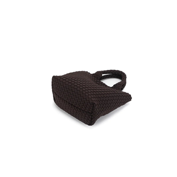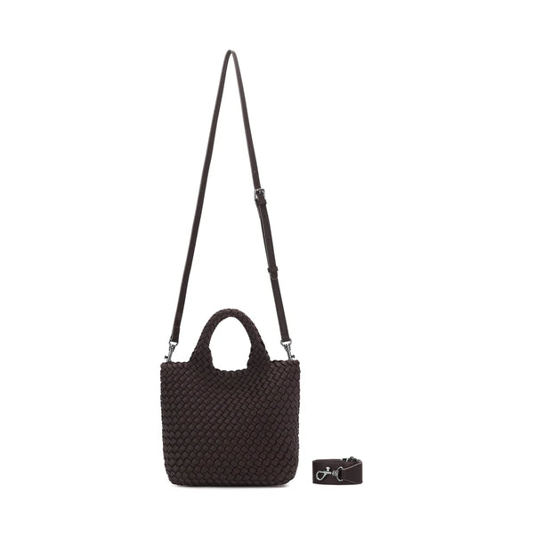 The Riviera Tote, crafted in handwoven neoprene, is a 2-piece set designed for style and versatility. Each bag includes a matching mini pouch and three interchangeable straps — a sleek vegan leather crossbody, a casual cotton strap, and a woven chain strap. Spacious yet chic, it transitions seamlessly from everyday errands to elevated outings.