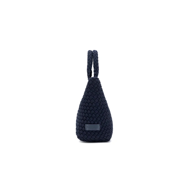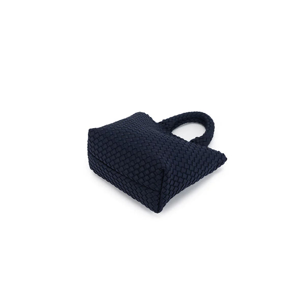 The Riviera Tote, crafted in handwoven neoprene, is a 2-piece set designed for style and versatility. Each bag includes a matching mini pouch and three interchangeable straps — a sleek vegan leather crossbody, a casual cotton strap, and a woven chain strap. Spacious yet chic, it transitions seamlessly from everyday errands to elevated outings.