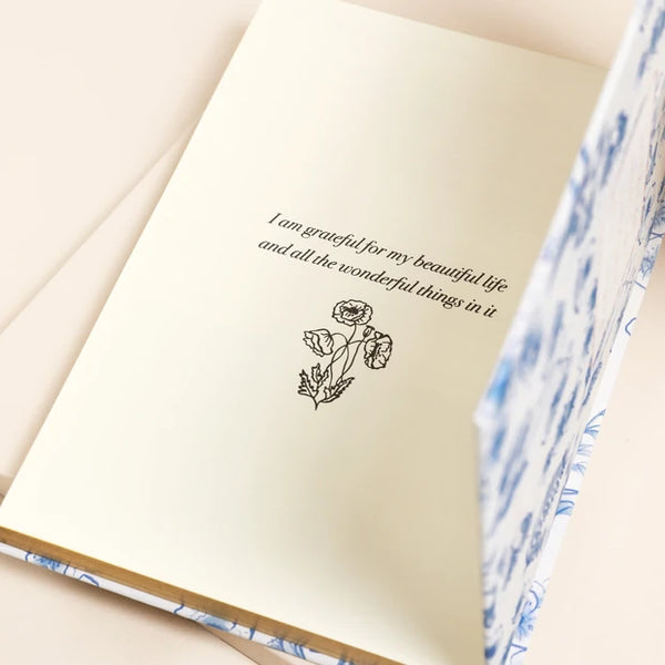 With a blue wildflower print cover, this notebook is full of prompts to support your journey of self-growth. Each double-page spread includes a morning planner to set your intentions for the day, covering your goals, feelings, self-care and affirmations.