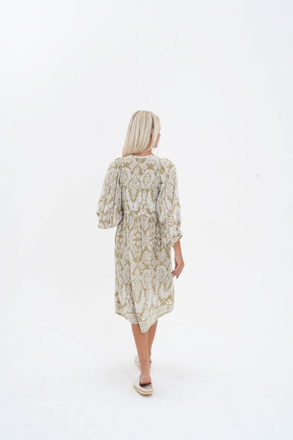 Elevate your wardrobe with the Totem short dress in, featuring a flattering V-neckline and convenient button-up front. Its long sleeves and relaxed, oversized fit offer effortless comfort and style.