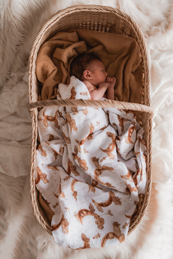 Welcome your little one to the world with our Cradle Song Swaddle! Designed to feel just like the womb and made of ultra-soft organic cotton muslin, it's the perfect way to soothe and comfort your bundle of joy. That's some cozy-warm lovin' right there!
